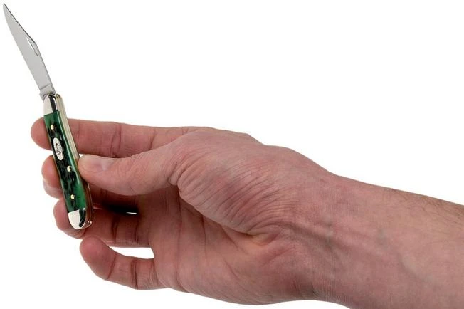 The Case Peanut is a traditional pocket knife with the classic Peanut shape This pattern takes its name from the shape of the handle: which, with a little imagination, resembles the skin of a peanut. It’s a pretty small knife with two blades in it: a clip-point head blade and a pen-shape secondary blade. Both blades have a slightly different point. You can use them for different tasks, or you can switch blades when one of them is bone. They are both held in place by a slipjoint when opened.