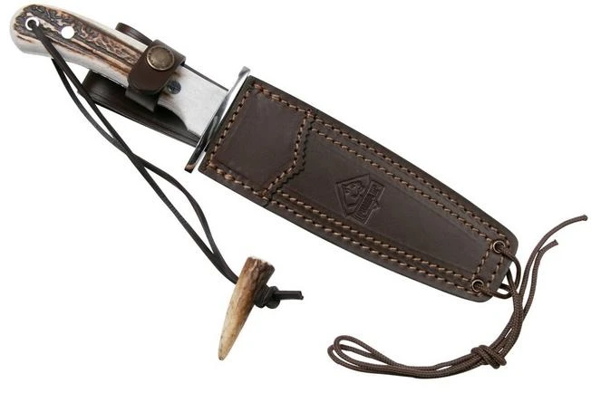 The PUMA IP El Anta is a classic hunting knife. This hunting knife is made by hand in Spain. The stunning antler handle has finger grooves so the knife is comfortable to hold. The scales are held together by two traditional rivets. The blade and handle are nicely separated by a large stainless steel bolster. This also functions as a finger guard. The sturdy Bowie blade is made from stainless steel.