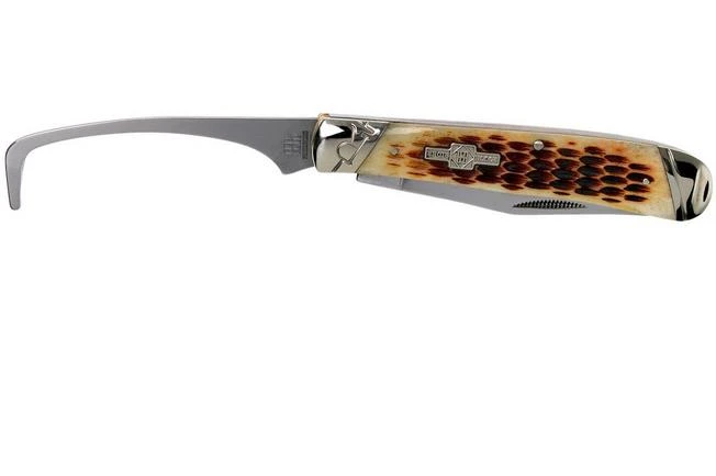 The Rough Ryder Equestrian Trapper is a special, traditional pocket knife. It is a trapper, but enhanced with an additional tool: a hoof pick. It is used by horse enthusiasts to remove pebbles and such from the hooves of horses. But also farmers appreciate this type of knife. You open this knife with two hands and a slipjoint prevents accidental closing. As such you can legally carry this pocket knife in many places in Europe.