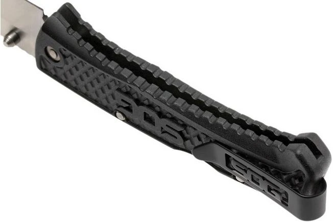 The SOG Traction – Satin TD1011-CP is a lightweight, affordable pocket knife for everyday use. The long and thinly ground blade tip is ideally suited for fine cutting and carving. This blade tip is also very strong due to the tanto shape of the blade. The knife is completely symmetrical, thanks to the two thumb studs, pocket clip on both sides, and the back lock on the spine. It is therefore ideal for both left-handed and right-handed users. The razor-sharp tanto blade is made from 5Cr13MoV steel, a stainless steel that is very easy to sharpen. It opens nice and smoothly thanks to the thumb studs on the blade. The knife is also very easy to close by lightly pressing on the back lock. This knife’s handle is made of fibre-reinforced nylon (FRN) and is therefore both lightweight and extremely strong. The handle offers great grip and control in any situation. You can discreetly carry the knife with you by using the deep-carry pocket clip. Looking for a quality knife at an affordable price? Then don’t miss the SOG Traction!